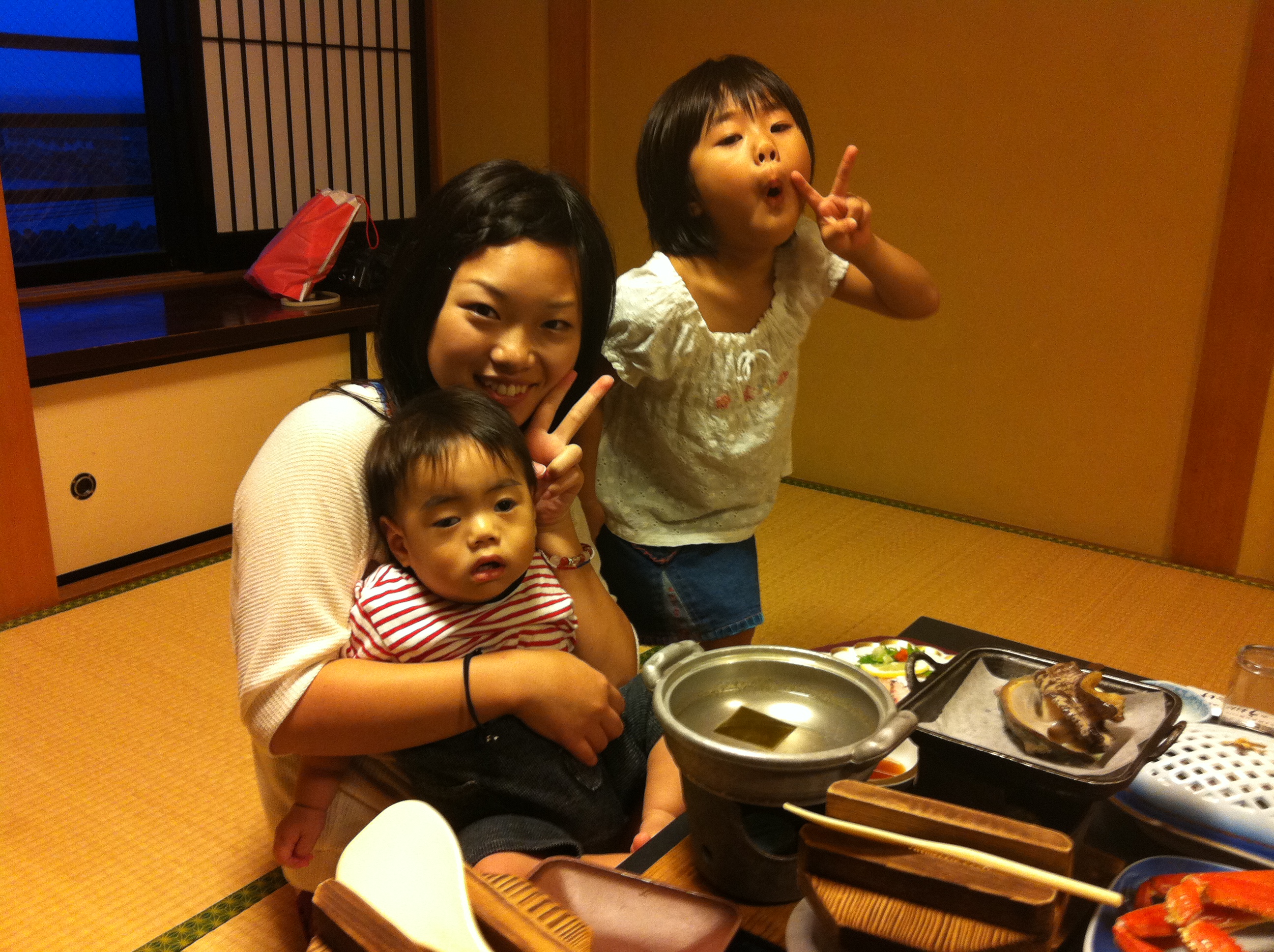 早めに着いた旅館では、蒼ちゃんは4回も温泉に入ったり、夕食にはカニやアワビのステーキなんぞ、大満喫![]()