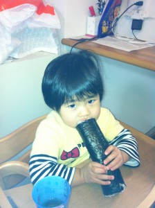 毎年恒例節分!今年の方位の「北北西」に向いて、恵方巻きを食べました
