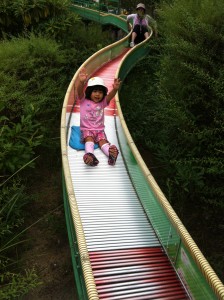 定番の長~い滑り台を何度も滑って、新しくなっていた、「人工芝のソリ」も堪能してきました この、ソリ用の人工芝は良くできていて、適度なスピードで真っ直ぐに滑れる工夫がされています。 以前は、途中で止まったり、横方向に流れたりしていたのに、真っ直ぐに下まで一直線に滑れます。