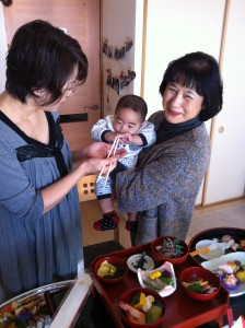 お母さんとおばあちゃんに抱かれ、健康でいっぱい食べれますようにと願ってます