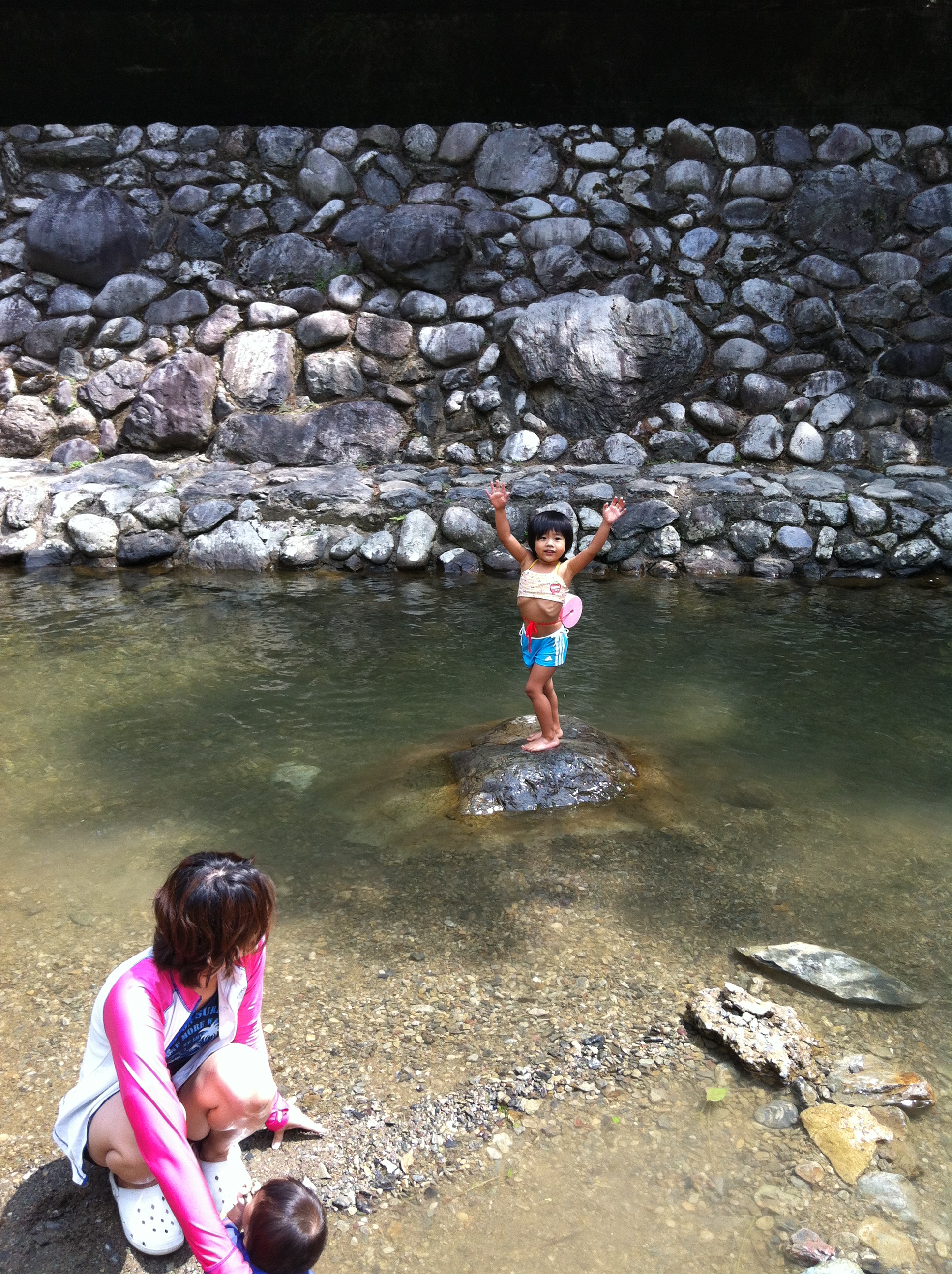 ほんとは、もっと奥まで進んで、滝を見に行かないと行けないのですが、駐車場より入ってすぐの、浅せの川で、十分堪能してきました。
